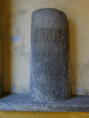 Nell’atrio esterno del palazzo comunale, si può vedere, posta in una nicchia, una grossa pietra di forma semicilindrica di epoca romana
