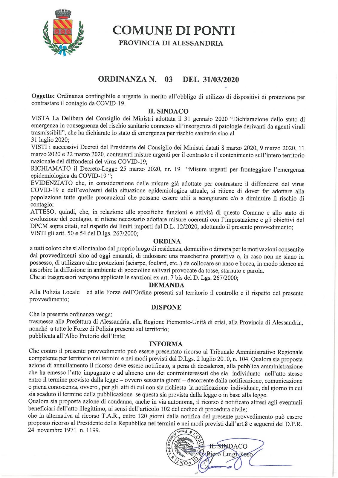 ORDINANZA CONTINGIBILE E URGENTE IN MERITO ALL'OBBLIGO DI UTILIZZO DI DISPOSITIVI DI PROTEZIONE PER CONTRASTARE IL CONTAGIO DA COVID-19